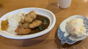 メニュー:今月はチキンカツを乗せた具だくさんカツカレーです!